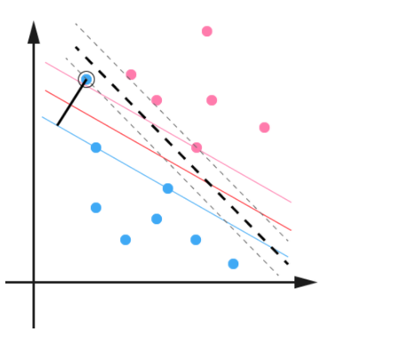 ,而虚线间隔边界上的点则是支持向量。由于这些支持向量刚好在虚线间隔边界上,所以它们满足