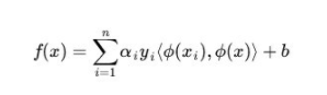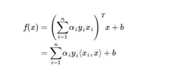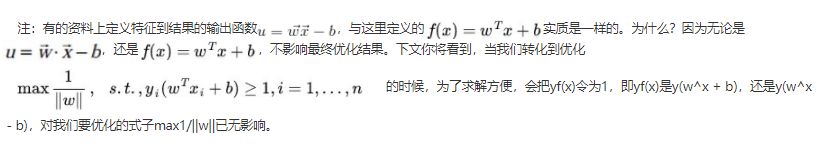 换言之,在进行分类的时候,遇到一个新的数据点x,将x代入f(x) 中,如果f(x)小于0则将x的类别赋为-1,如果f(x)大于0则将x的类别赋为1。