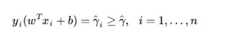 为了得到 γ 的绝对值,令 γ 乘上对应的类别 y,即可得出几何间隔(用