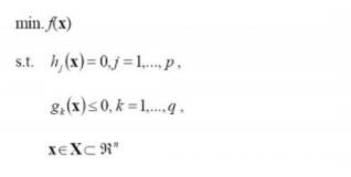 其中,f(x)是需要最小化的函数,h(x)是等式约束,g(x)是不等式约束,p和q分别为等式约束和不等式约束的数量。