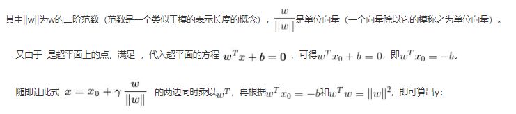 事实上,我们可以对法向量w加些约束条件,从而引出真正定义点到超平面的距离--几何间隔(geometrical margin)的概念。