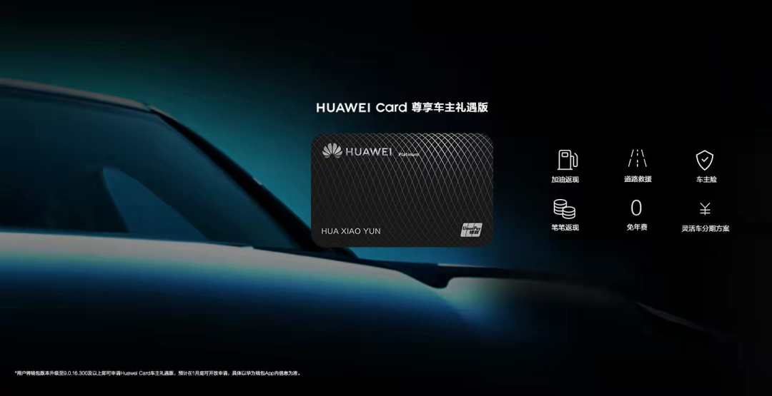 Huawei Card 是华为钱包联合银联、银行为华为用户打造的专属信用卡,用户数已超过 220 万。此次全新上线的 Huawei Card 车主礼遇版,是面向汽车场景定向推出的权益,覆盖从购车到用车的全生命周期,让用户在华为钱包 App 内就能完成全线上快速申卡、加油返现及意外险等多样化的车主权益。