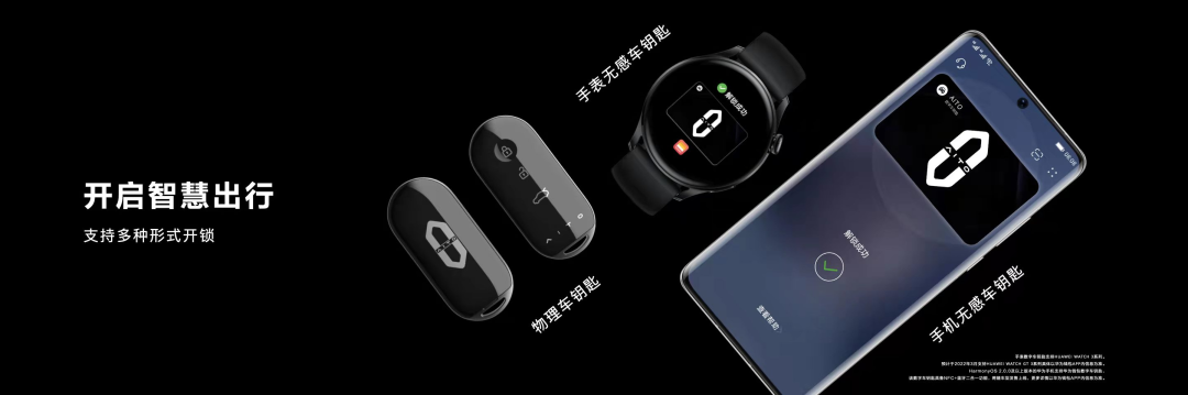 华为钱包在数字生活领域最新的创新之作,就是和 AITO 问界 M5 智能出行「黑科技」一起亮相的,行业内首款蓝牙 + NFC 二合一的穿戴车钥匙。穿戴车钥匙和华为手机数字车钥匙一样,提供了金融级安全防护,能够实现蓝牙无感解锁、闭锁和启动引擎以及 NFC 碰一碰解锁。
