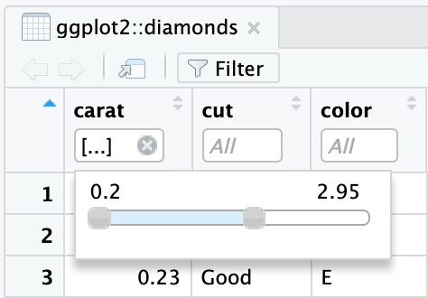 RStudio 1.1 在数据窗口中提供筛选数据功能