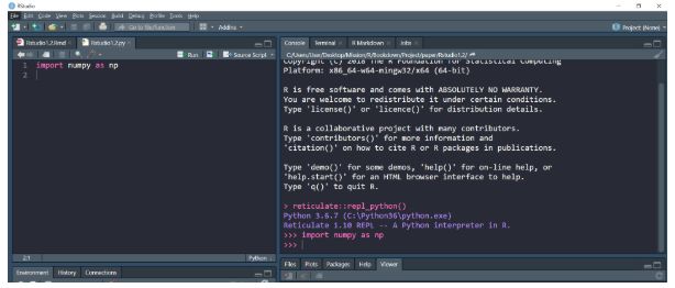 1.支持python每行单独运行python。在Rstudio 1.2 中打开.py 文件并运行时。会自动加载 reticulate package中的 repl_python()function。使得Rstudio 瞬间变成一个python IDE。