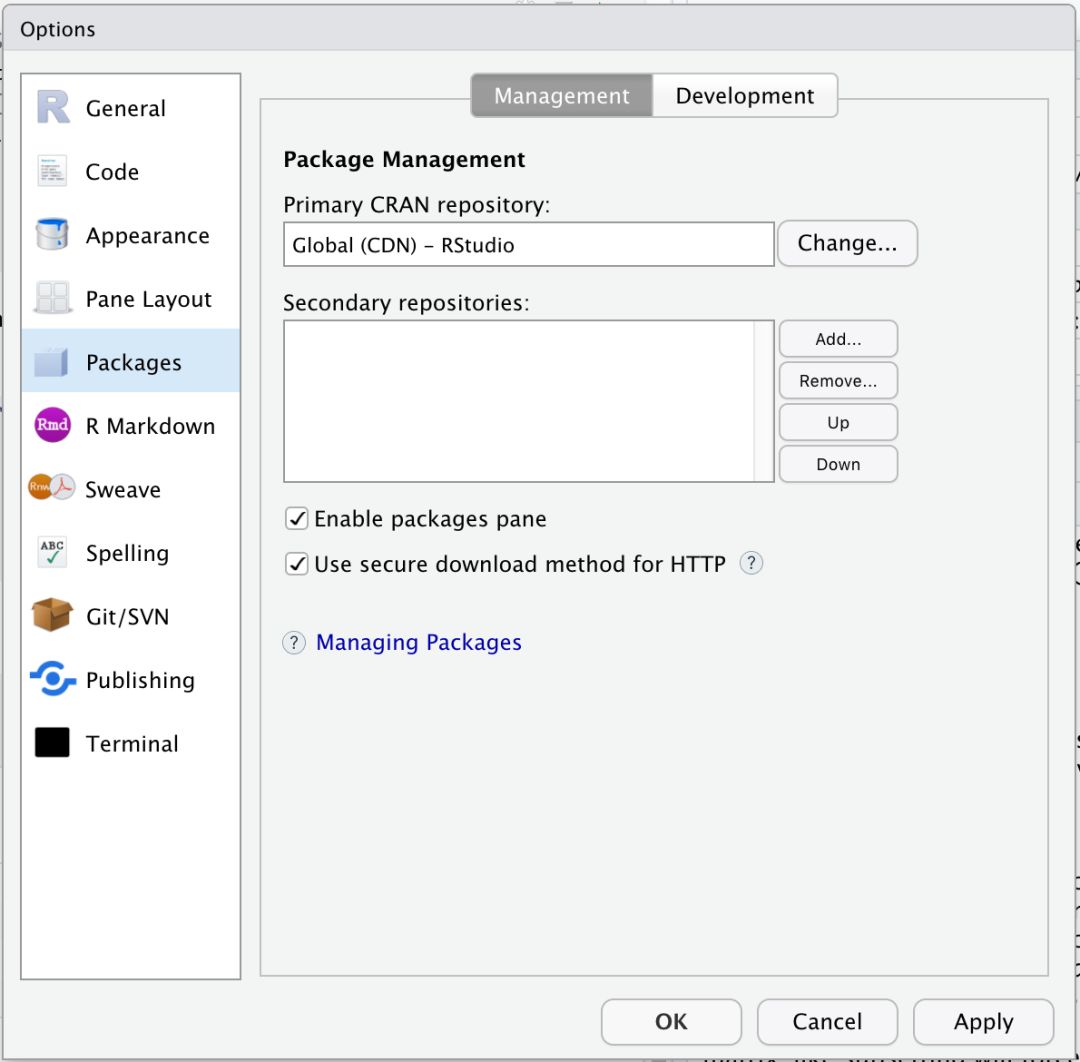 RStudio1.2 可以设置 primary 和 secondary repositories
