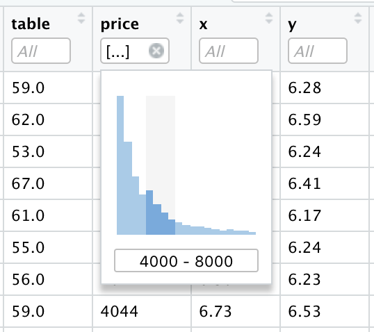 Rstudio 1.2 显示变量的 histogram 使得在筛选数值型数据时更加直观。