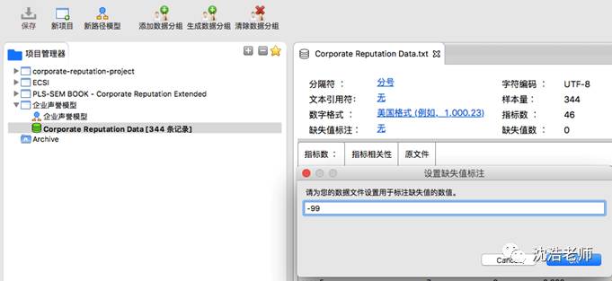 创建新项目, 并导入数据。由于数据有缺失值,且在源文件中标注为-99,故进行缺失值标注更改。