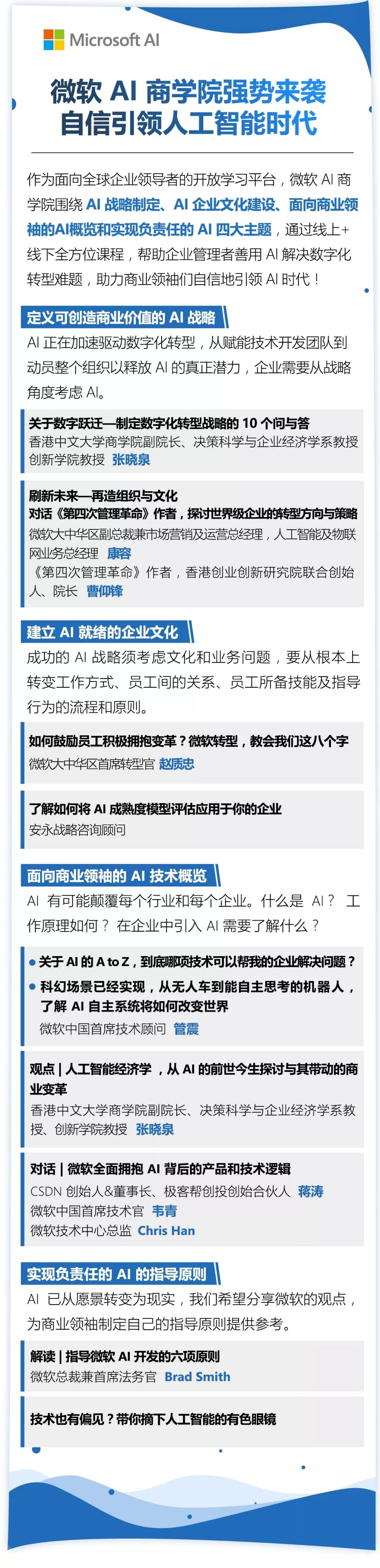 线上直播请点击阅读原文,获取更多微软 AI 商学院精彩课程!即刻开启AI智慧赋能企业之旅!