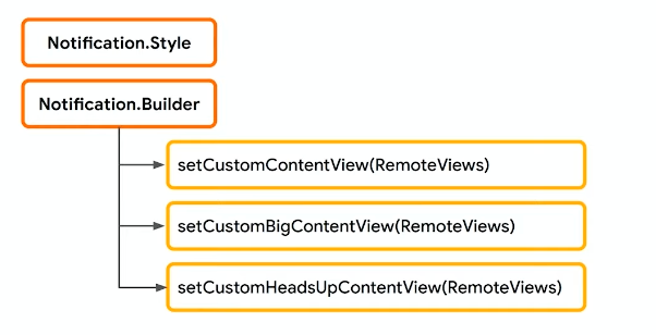 该模板确保自定义通知在所有状态下的装饰与其他通知相同,例如图标、应用名、展开和收起状态标识。该变更会影响使用自定义 Notification.Style 子类或使用 Notification.Builder 方法设置自定义内容视图的应用。如果您的应用正在使用完全自定义通知,请务必测试这类通知是否能够兼容新模板。