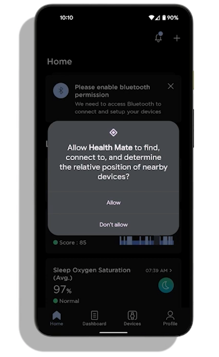 对我们而言,附近设备权限是 Android 12 中最重要的变更之一。 Withings HealthMate