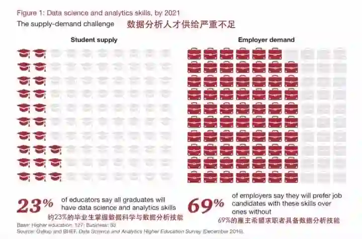 “数据分析的人才需求每年都在增长,而每年的高校毕业生数量远远无法满足行业需求。”——美国企业与高等教育论坛(BHEF)与普华永道(PWC)近期发布重要报告,现在入行数据分析师恰逢其时。
