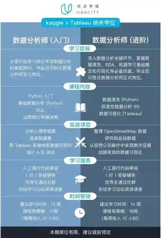 Udacity 联手 Kaggle x Tableau 开发的硅谷数据分析课程,专为四类需求量身打造: