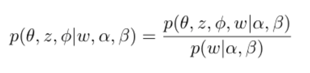学习LDA模型的问题称为“推理”问题。给定观测变量w,以及超参数⍺和β,我们如何估计潜变量的后验概率。