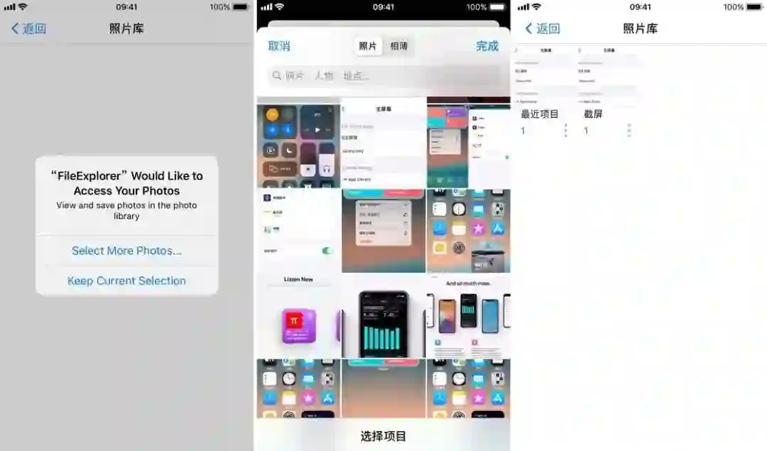 照片权限方面则加入了「仅允许选中的图片」,你可以手动选择 app 能够访问的照片,从 app 的视角来看,你的相册里就只有这几张照片,它无法得知其它照片的存在。