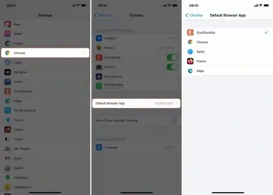 此外,iOS 14 还支持修改默认浏览器和邮件 app。你只需要下载适配了此功能的 app,随后在系统设置中找到对应的 app,并进入修改即可。关于此功能的详细介绍,你可以参考 这篇文章。
