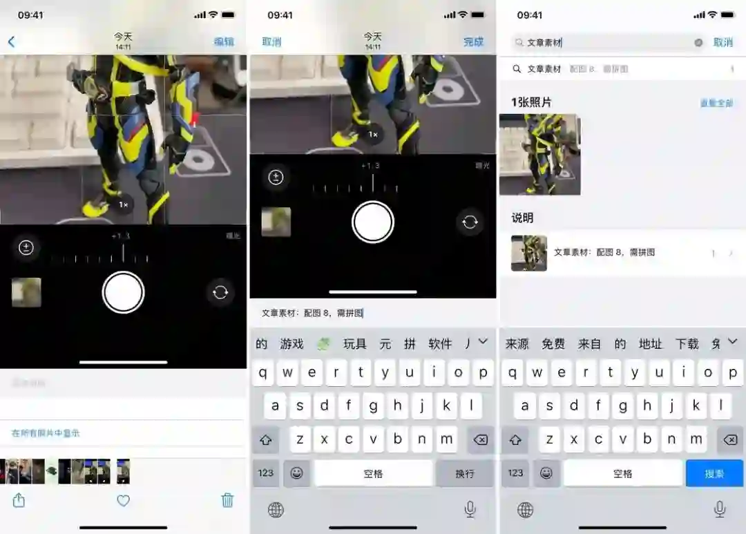 你只需要在相册里找到需要添加备注说明的照片,随后向上滑动即可找到「添加说明」的位置。你可以输入对照片的备注,或是简述照片背后的故事。在后续搜索时,你只需要输入备注中出现过的字词,即可精准找到想要的图片。