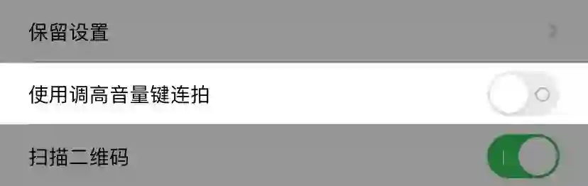 开启「使用调高音量键连拍」后,你便可以通过长按音量加来实现连拍,长按音量减则仍是录制视频。