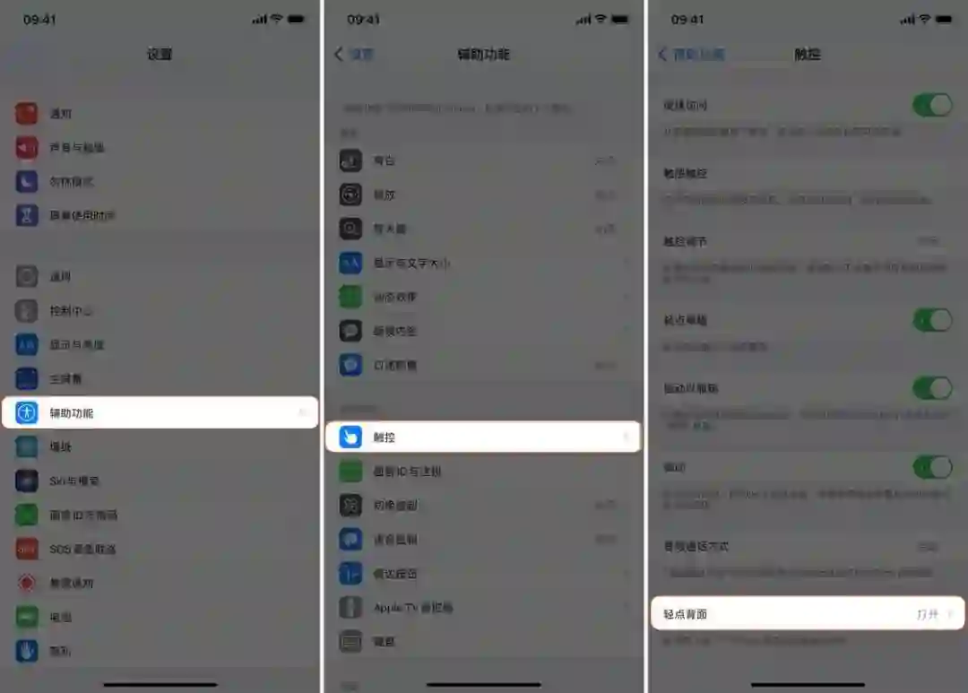 「轻点背面」支持双击或三击手机背面来实现一些功能,比如调整音量、锁屏,或是截图、唤醒 Siri 等。如果你手持大屏设备,不方便触碰实体按键,或者不方便单手下拉控制中心,都可以用「轻点背面」来实现。