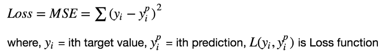 监督学习算法的目标是定义一个损失函数,然后最小化它。我们来看看,数学上梯度提升算法是怎么工作的。比如我们使用均方误差(MSE)作为损失函数: