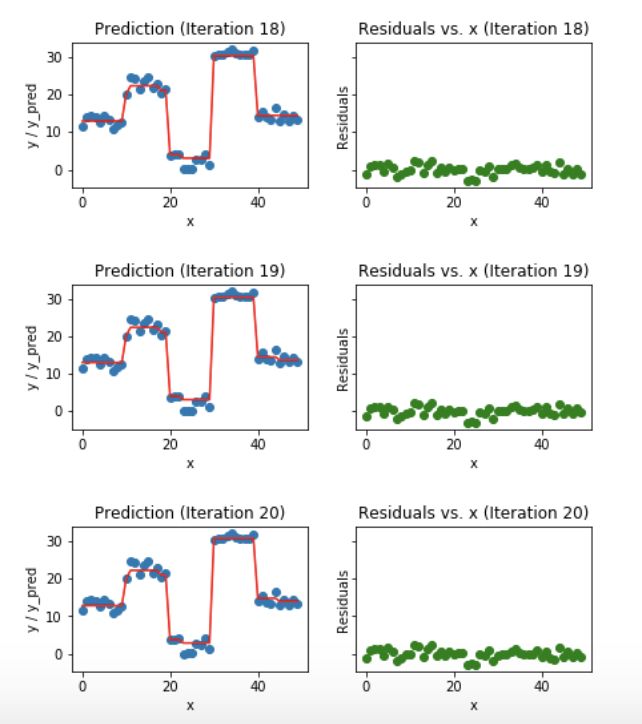 Fig 6. Visualization of gradient boosting predictions (18th to 20th iterations)