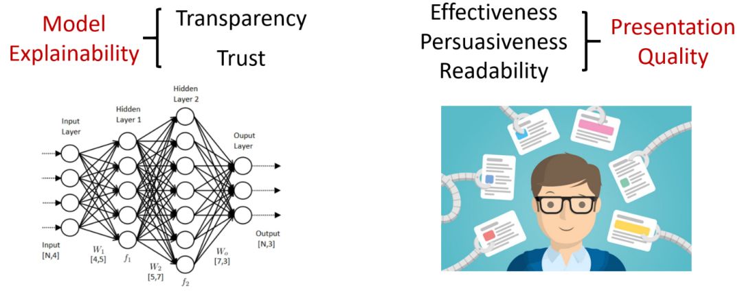 编者按:单纯的推荐结果和推荐结果+理由的组合,哪个更让你信服?长篇累牍的推荐语和言简意赅的关键词,你更愿意看哪个?这是人们每天都会面对的场景,也是可解释推荐系统研究需要不断优化的问题。