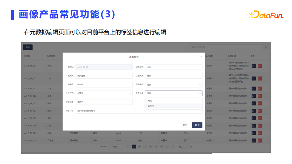 在元数据编辑页面可以对目前平台上的标签信息进行增删等编辑。