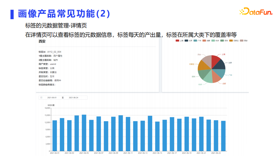 在元数据详情页可以查看标签的源数据信息、标签每天的产出量、标签在所属大类下的覆盖率等。