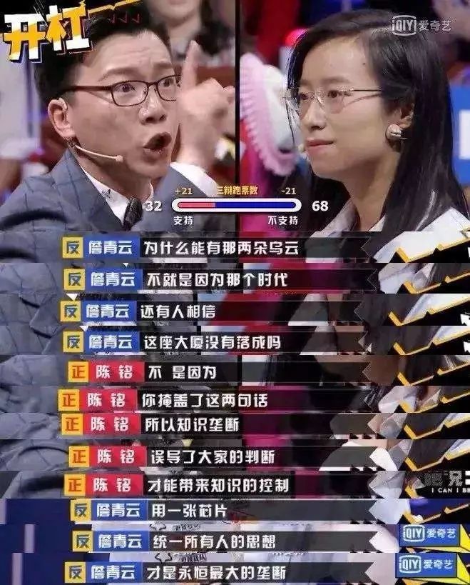早期《奇葩说》里,有“世界需不需要超级英雄?”“该鼓励病危者活下去吗?”等宏大的辩题。第五季则增加了很多爱情、职场相关的辩题:“结婚前,我让伴侣在TA的房本上加我的名字,有错吗?”“恋爱中有其他追求者,要不要告诉另一半?”……