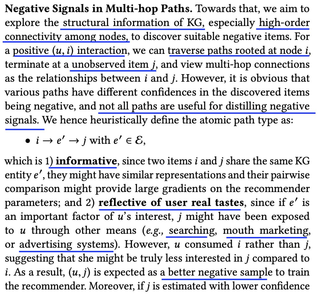 这篇文章中,作出这样一个假设,即商品的知识图谱能够对商品和知识图谱实体之间提供比较丰富的信息,这有助于得到信息丰富和比较真实的负样本。