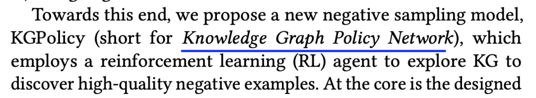 本文介绍了一种新的负采样模型,知识图谱策略网络(KGPolicy),以强化学习智能体的形式来探索高质量负样本。
