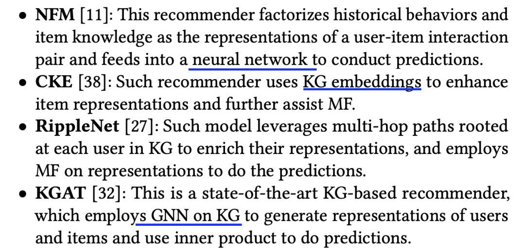 参与对比的几种基于知识图谱的推荐模型有以下几个