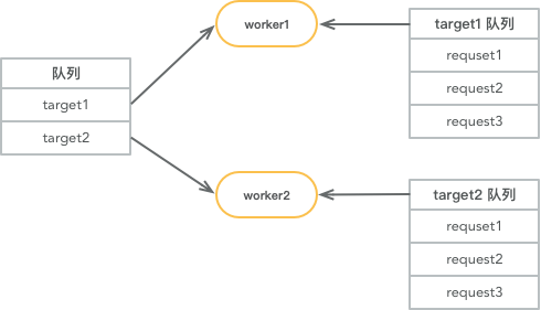 2. worker1 从 target1 队列中取出和 target1 相关的任务