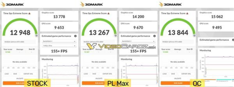 解锁功耗限制之后,RTX 4080 Time Spy 跑分可以提升约 3%,再小超一把,提升幅度达到 9%。Port Royal 超频后可提升约 7%。