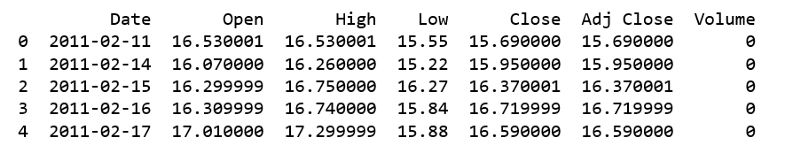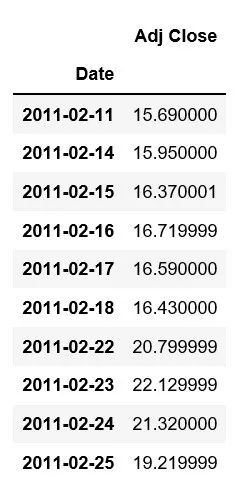 df.drop(['Open', 'High', 'Low', 'Close', 'Volume'], axis=1, inplace=True)