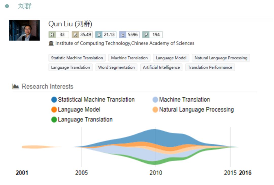 而后,AMiner 选取在 ACL、EMNLP、NAACL、COLING 等 4 个会议在近 5 年累计发表 10 次以 上论文的国内学者包括刘群、刘挺、周明、常宝宝、黄萱菁、刘洋、孙茂松、李素建、万小 军、邱锡鹏、穗志方等。