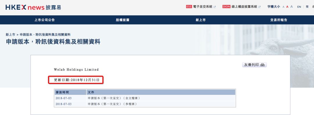 香港联交所网站显示,Welab Holdings Limited(我来贷)于2018年7月3日提交的招股书已经失效。