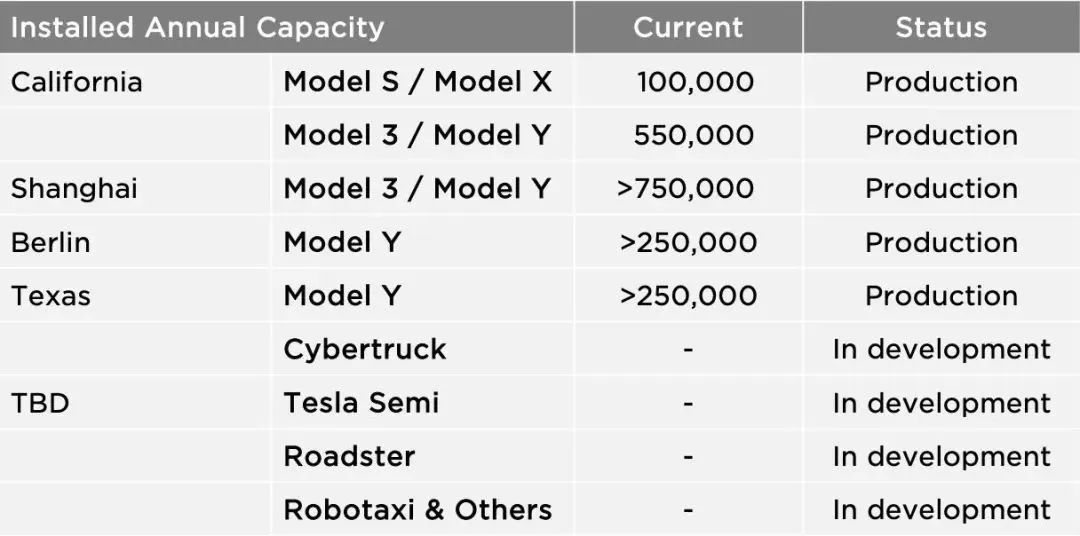 虽然上海超级工厂2021年的产量(48.41万辆)已经超过加州弗里蒙特超级工厂(45万辆左右),但在特斯拉官方财报数据中,上海超级工厂的规划年产能始终低于加州超级工厂。
