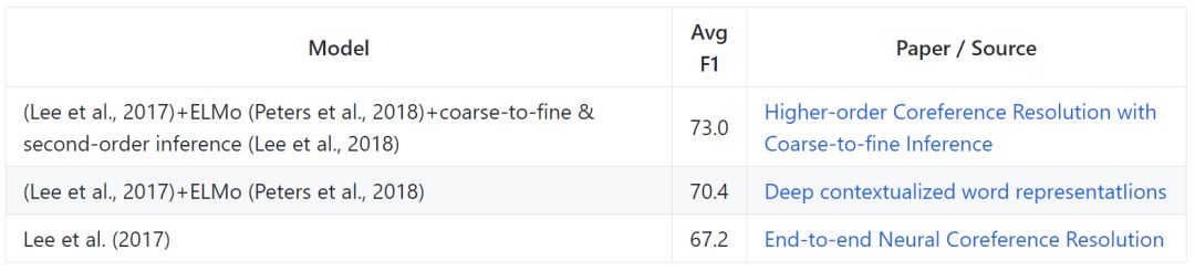 模型通常通过基于 F1 的 OntoNotes 基准进行评估(《Towards Robust Linguistic Analysis Using OntoNotes》)。