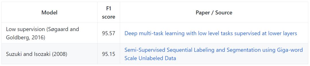 Penn Treebank 通常用于评估分块。第 15-18 部分用于训练,第 19 部分用于开发,第 20 部分用于测试。模型基于 F1 评估。