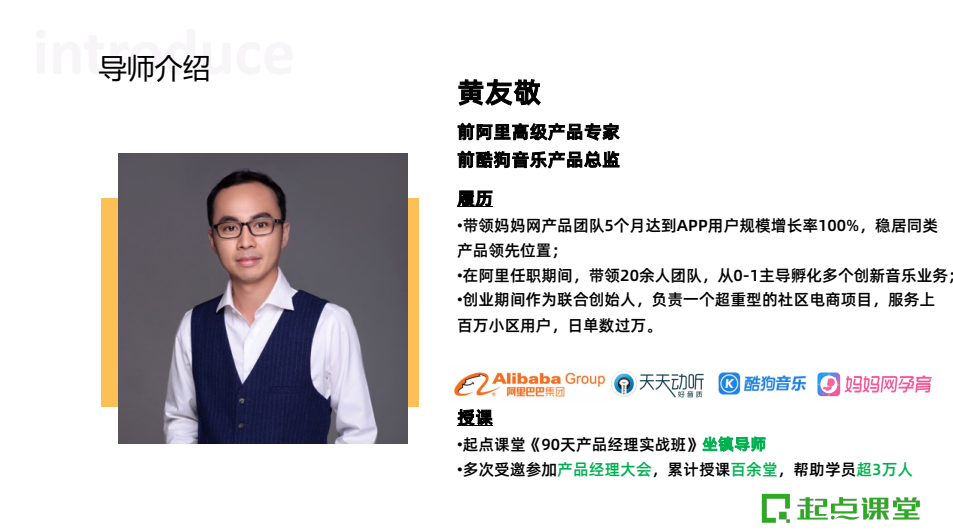 公开课内容精选自起点课堂《90天产品经理实战班》,直播授课导师:前阿里高级产品专家@黄友敬。