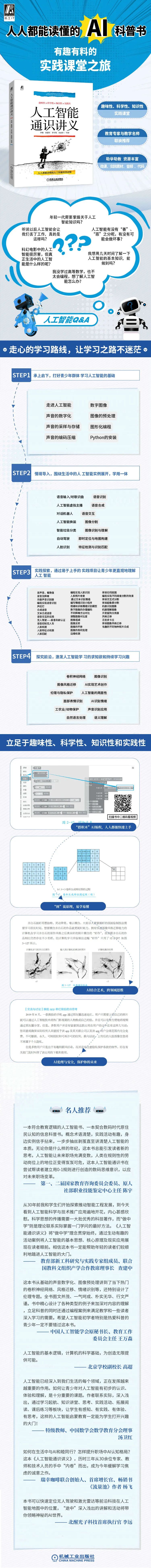 本书是面向青少年的人工智能科普书和入门教材,立足于趣味性、科学性、知识性和实践性,尽量避免晦涩专业术语对阅读流畅性的影响。书中还包含数十个精心筛选的实践案例,可根据读者需要灵活选用。全书共5个单元、14章,从人工智能的发展简史讲起,以语音、图像、生活中的典型场景及伦理问题为主要知识载体,聚焦问题,深入浅出地引出人工智能的基本思想、主要原理、知识概念、典型应用实践等。本书可作为青少年课外科普读物和中学信息技术等学科的辅助教材、职业院校的专业教材和本科阶段的通识教育教材,还可作为相关培训教材和科学素质提升读本。