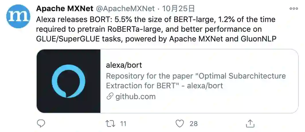 研究者在 GitHub 上开源了训练模型以及代码:https://github.com/alexa/bort/