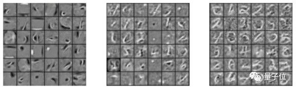 将RBF堆叠的原因就是将底层RBF学到的特征逐渐传递的上层的RBF上,逐渐抽取复杂的特征。比如下图从左到右就可以是低层RBF学到的特征到高层RBF学到的复杂特征。在得到这些良好的特征后就可以用第二部分的传统神经网络进行学习。