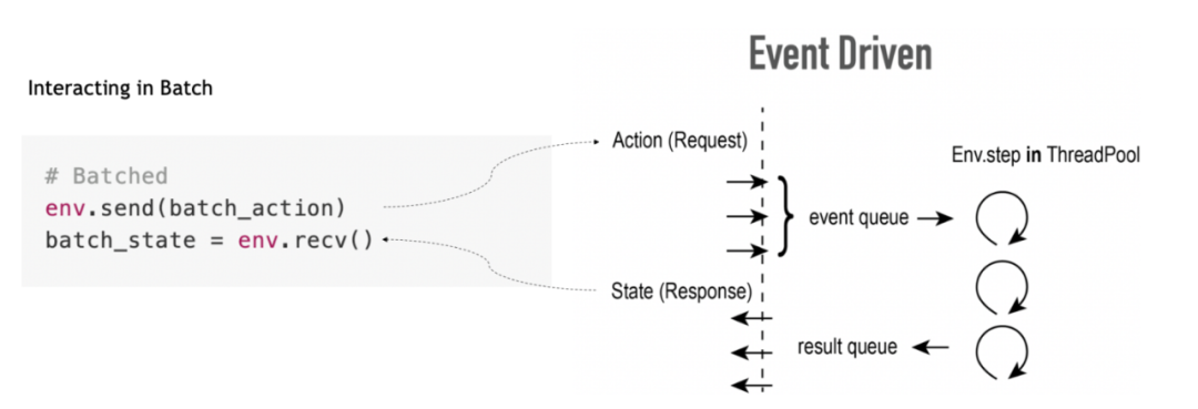 EnvPool 的整体设计便是遵循事件驱动的原则,因此引入异步的 API