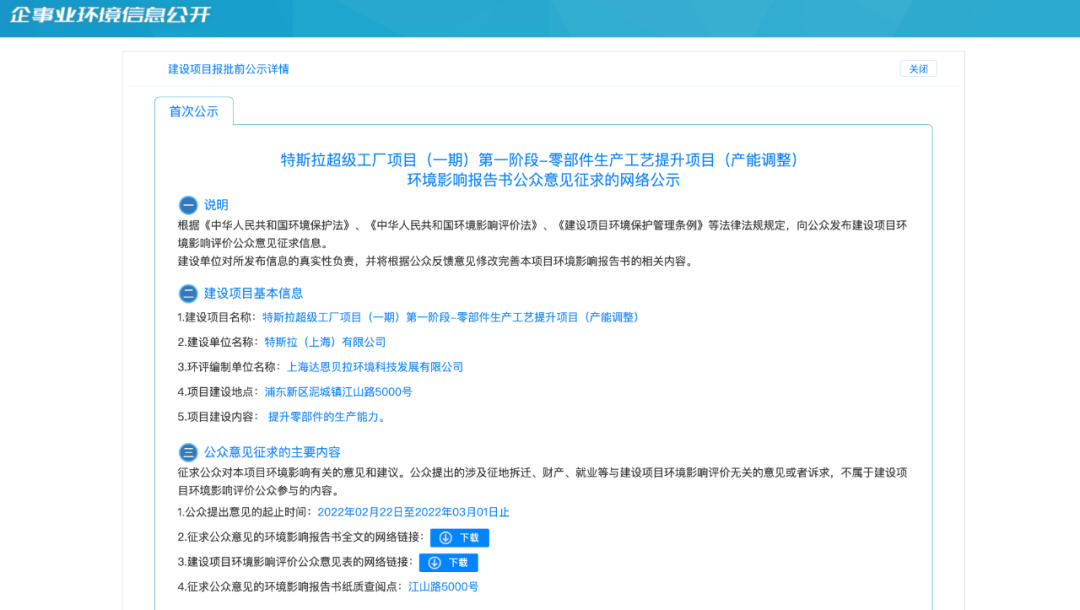 去年 11 月,特斯拉上海工厂的第二阶段产线优化项目刚刚进行了环评公示,投资总额 12 亿,预计今年 4 月完工。