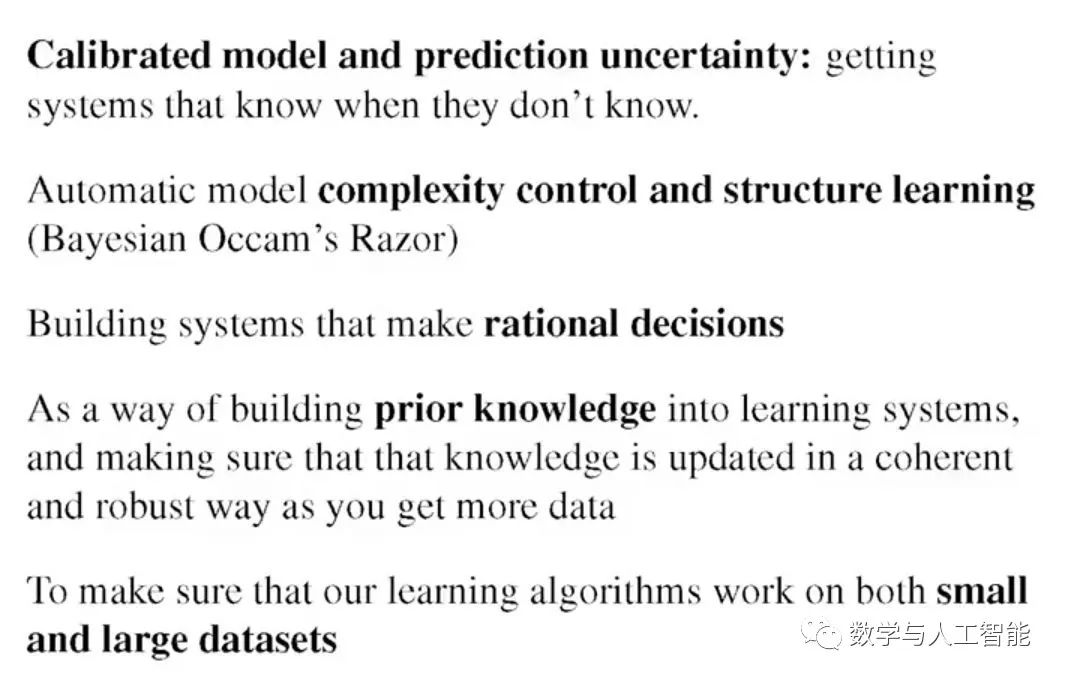对于 AI 来说,我们希望构建的系统能执行合理的决策。这表明我们希望系统能通过连贯的方式根据数据更新信念,并且根据效用论最大化效用来做出合理与理性的决策。同样,我们需要将先验知识嵌入到学习系统中,并且随着我们获得越来越多的数据,先验知识应该以连续和鲁棒的方式得到更新。