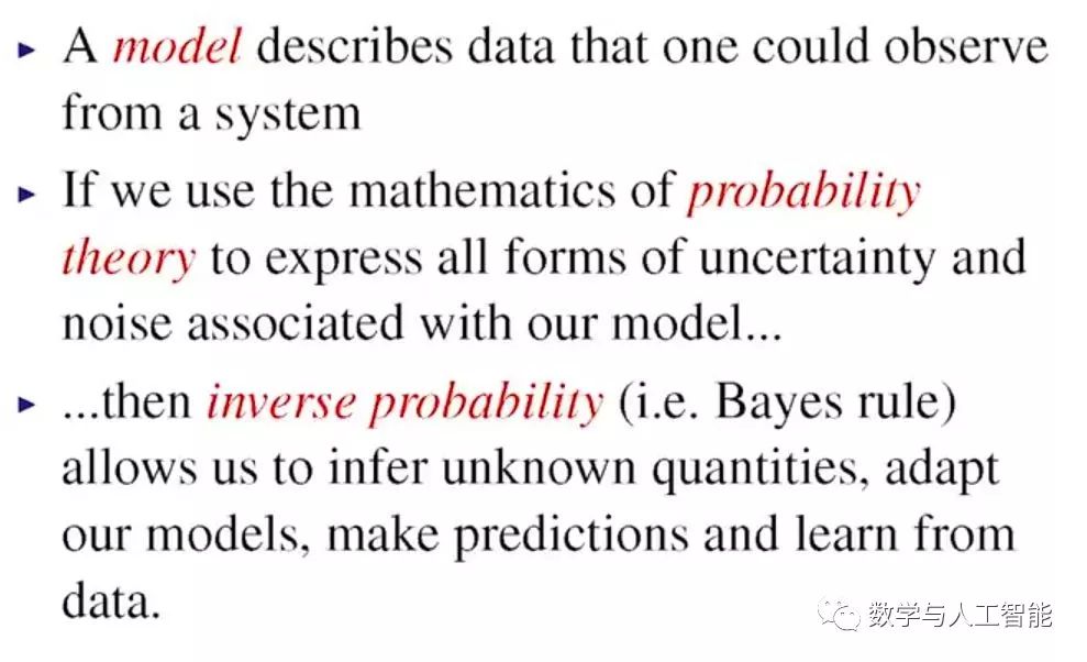 如果当我们对世界的某种数据建模时,我们需要预测那些没观察到的数据以及它们之间的不确定性,因此我们可以使用数学中概率论描述这种不确定性并完成「模型」的构建。