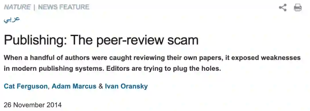 Nature 在 2014 年便在一篇报道中对伪造同行评议的行为进行了披露。