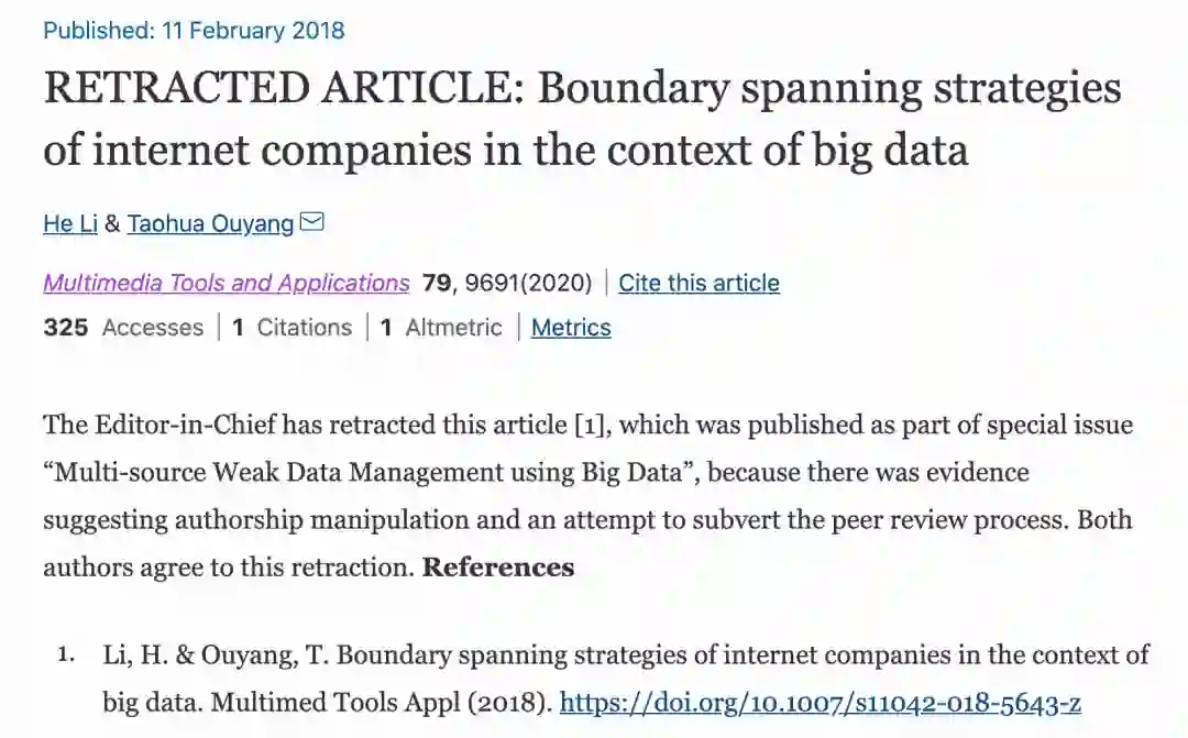 据悉,本次撤稿的文章大都来自特刊「Multi-source Weak Data Management using Big Data」,系期刊组织的特刊征稿(Special issue)。